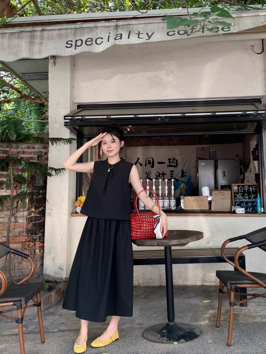 A lightweight, sleeveless two-piece in crisp white—perfect for sunny strolls and café dates. Easy, airy, and effortlessly chic.